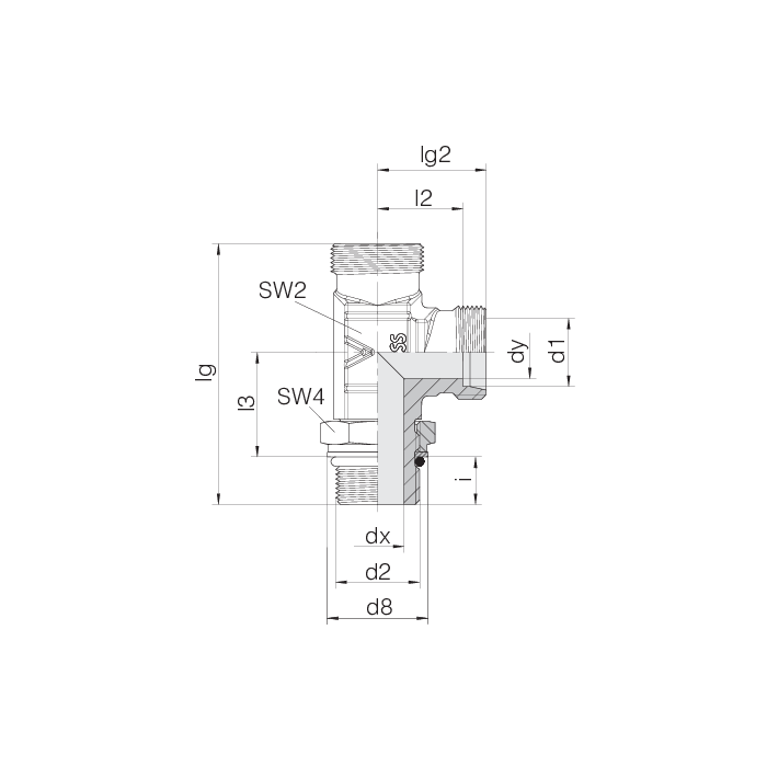 Einstellbare L-Stutzen mit Kontermutter ISO 6149